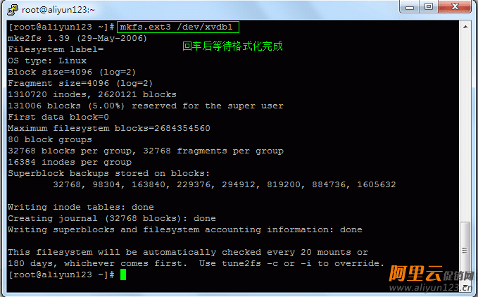 5.格式化/dev/xvdb1分区